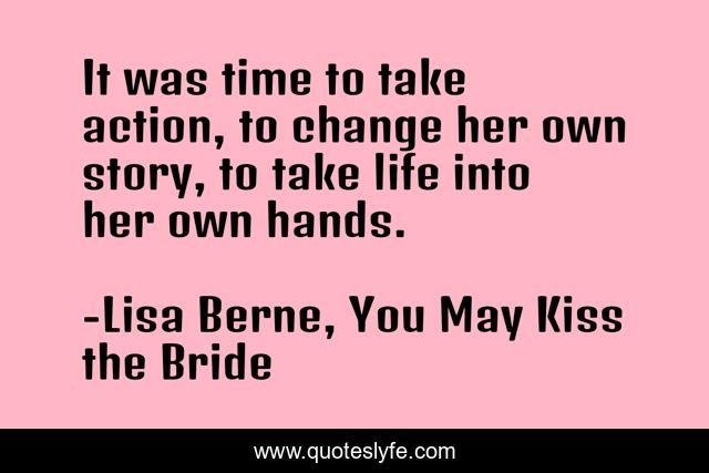 This page presents the quote "It was time to take action, to change her own story, to take life into her own hands.". Author of this quote is Lisa Berne, You May Kiss the Bride. This quote is about change-your-story, determination,.