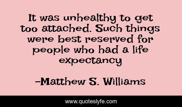 This page presents the quote "It was unhealthy to get too attached. Such things were best reserved for people who had a life expectancy". Author of this quote is Matthew S. Williams. This quote is about quotes, sci-fi, author,.