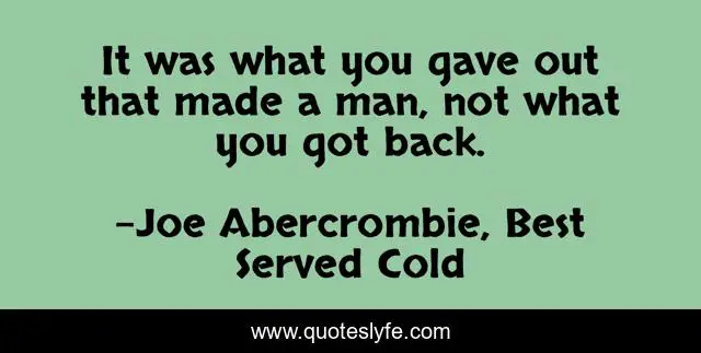 This page presents the quote "It was what you gave out that made a man, not what you got back.". Author of this quote is Joe Abercrombie, Best Served Cold. .