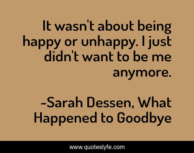 This page presents the quote "It wasn't about being happy or unhappy. I just didn't want to be me anymore.". Author of this quote is Sarah Dessen, What Happened to Goodbye. .