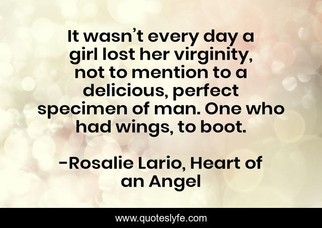 This page presents the quote "It wasn’t every day a girl lost her virginity, not to mention to a delicious, perfect specimen of man. One who had wings, to boot.". Author of this quote is Rosalie Lario, Heart of an Angel. This quote is about angel-romance, angel, paranormal-romance, fallen-angel, fantasy-romance,.