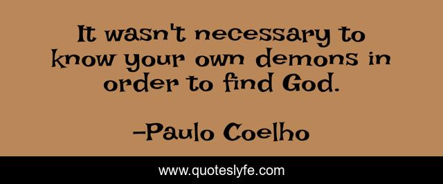 This page presents the quote "It wasn't necessary to know your own demons in order to find God.". Author of this quote is Paulo Coelho. This quote is about god, self, 11-minutes,.