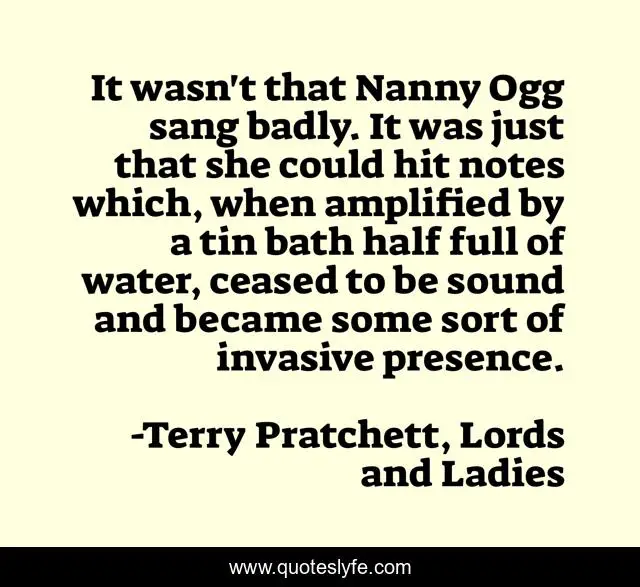 It wasn't that Nanny Ogg sang badly. It was just that she could hit notes which, when amplified by a tin bath half full of water, ceased to be sound and became some sort of invasive presence.
