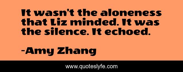 This page presents the quote "It wasn't the aloneness that Liz minded. It was the silence. It echoed.". Author of this quote is Amy Zhang. This quote is about alone, life, loneliness, sadness, silence,.