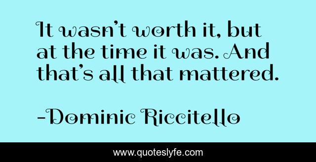 This page presents the quote "It wasn’t worth it, but at the time it was. And that’s all that mattered.". Author of this quote is Dominic Riccitello. This quote is about two-people, life, love, relationship, outlook, understanding, thoughts, worth, affection,.
