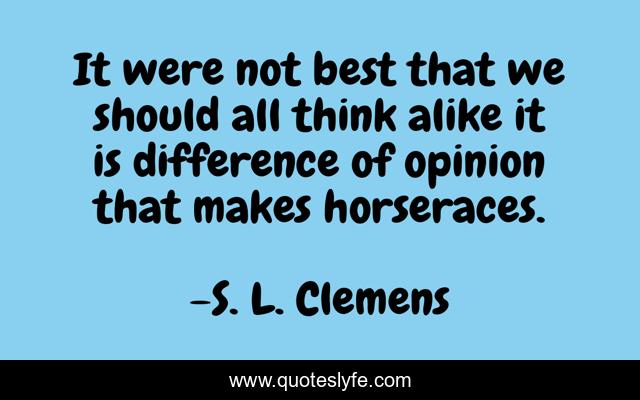 This page presents the quote "It were not best that we should all think alike it is difference of opinion that makes horseraces.". Author of this quote is S. L. Clemens. .