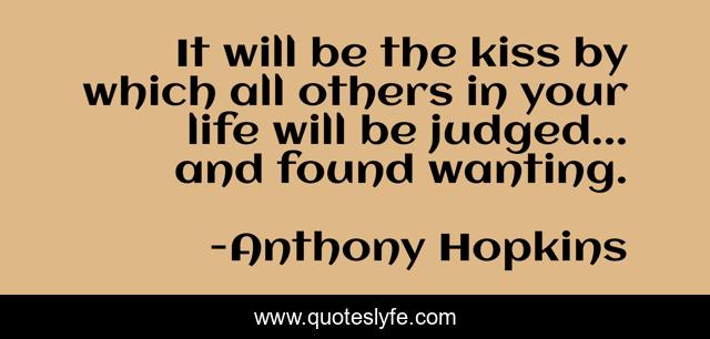 This page presents the quote "It will be the kiss by which all others in your life will be judged... and found wanting.". Author of this quote is Anthony Hopkins. This quote is about life, love, childhood, affection,.