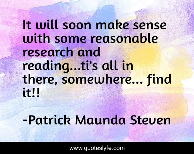 This page presents the quote "It will soon make sense with some reasonable research and reading...ti's all in there, somewhere... find it!!". Author of this quote is Patrick Maunda Steven. .