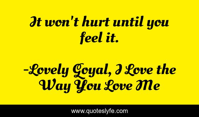 "Lovely Goyal, I Love the Way You Love Me Quotes." Quoteslyfe.com, 2025. Fri. 05 Dec. 2025. <https://www.quoteslyfe.com/quote/It-won-t-hurt-until-you-feel-10272>.