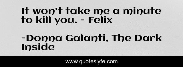 This page presents the quote "It won't take me a minute to kill you. - Felix". Author of this quote is Donna Galanti, The Dark Inside. This quote is about murder, betrayal, paranormal,.