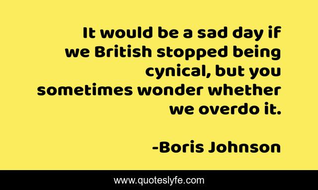 This page presents the quote "It would be a sad day if we British stopped being cynical, but you sometimes wonder whether we overdo it.". Author of this quote is Boris Johnson. This quote is about day, cynical,.
