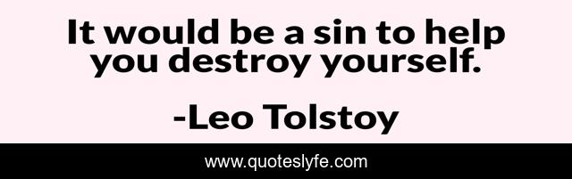 This page presents the quote "It would be a sin to help you destroy yourself.". Author of this quote is Leo Tolstoy. This quote is about self-destructive-behavior, impulsiveness, sin,.