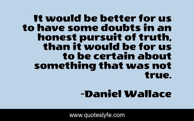 This page presents the quote "It would be better for us to have some doubts in an honest pursuit of truth, than it would be for us to be certain about something that was not true.". Author of this quote is Daniel Wallace. This quote is about science, skepticism,.