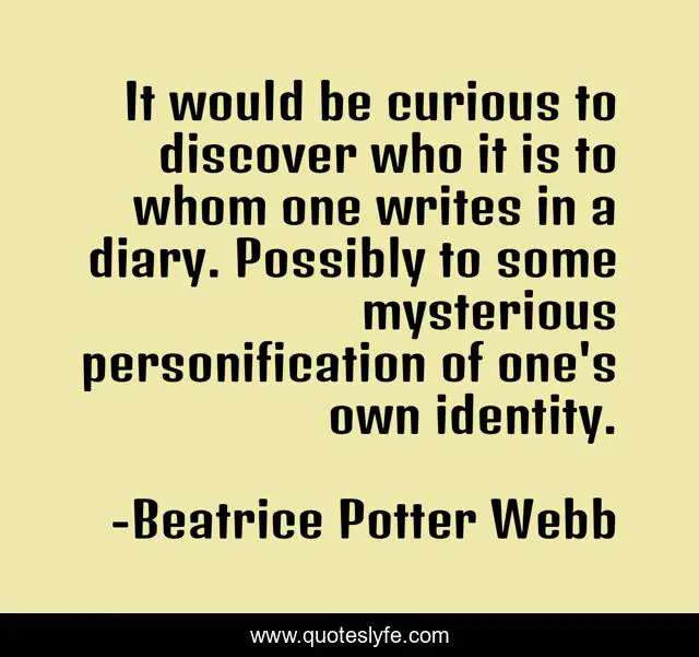 This page presents the quote "It would be curious to discover who it is to whom one writes in a diary. Possibly to some mysterious personification of one's own identity.". Author of this quote is Beatrice Potter Webb. .