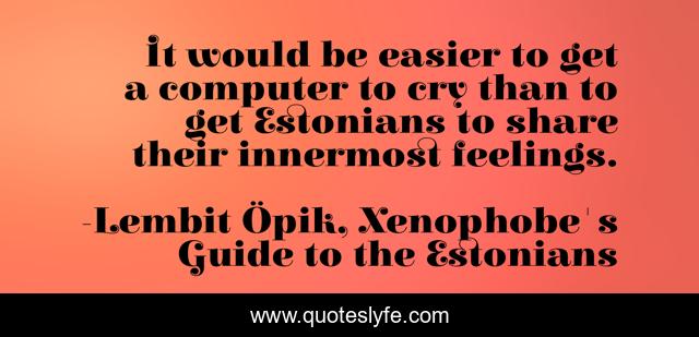 This page presents the quote "It would be easier to get a computer to cry than to get Estonians to share their innermost feelings.". Author of this quote is Lembit Öpik, Xenophobe's Guide to the Estonians. This quote is about culture, estonians, estonia,.