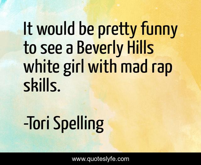 This page presents the quote "It would be pretty funny to see a Beverly Hills white girl with mad rap skills.". Author of this quote is Tori Spelling. This quote is about skills, girl, see,.
