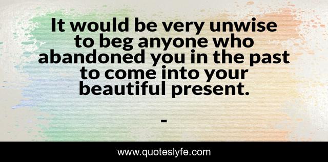 This page presents the quote "It would be very unwise to beg anyone who abandoned you in the past to come into your beautiful present.". Author of this quote is . This quote is about edmond-mbiaka, some-people-belong-in-your-past, your-beautiful-present,.