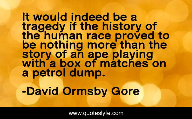 This page presents the quote "It would indeed be a tragedy if the history of the human race proved to be nothing more than the story of an ape playing with a box of matches on a petrol dump.". Author of this quote is David Ormsby Gore. .