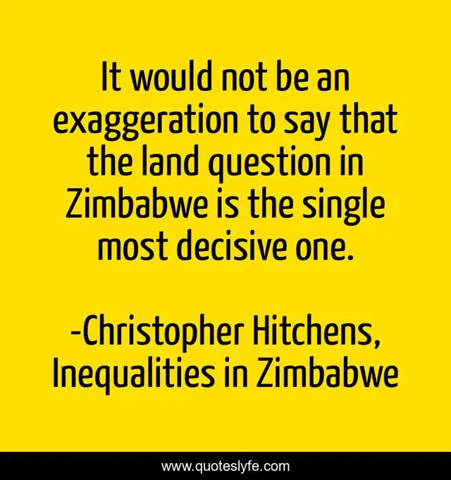 This page presents the quote "It would not be an exaggeration to say that the land question in Zimbabwe is the single most decisive one.". Author of this quote is Christopher Hitchens, Inequalities in Zimbabwe. This quote is about land, 1979, prescience, land-reform, zimbabwe, politics, land-reform-in-zimbabwe,.