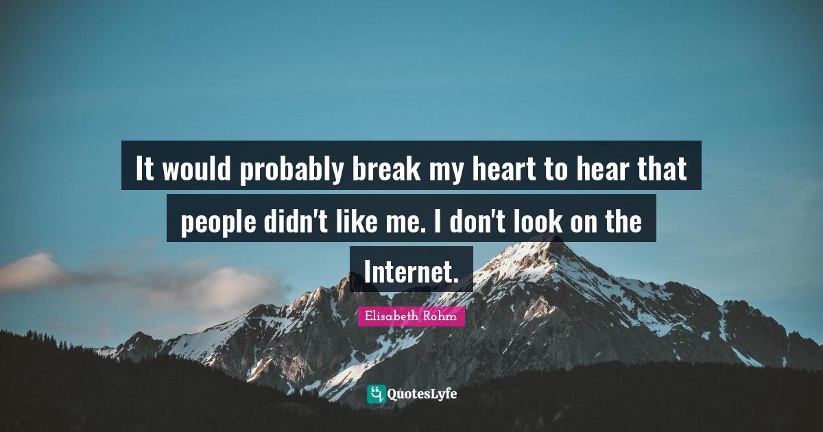 This page presents the quote "It would probably break my heart to hear that people didn't like me. I don't look on the Internet.". Author of this quote is Elisabeth Rohm. This quote is about break, my heart, like me, internet, people, looks, heart,.