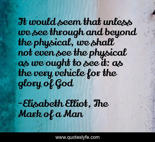 "Elisabeth Elliot, The Mark of a Man Quotes." Quoteslyfe.com, 2025. Fri. 05 Dec. 2025. <https://www.quoteslyfe.com/quote/It-would-seem-that-unless-we-see-44024>.