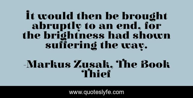 This page presents the quote "It would then be brought abruptly to an end, for the brightness had shown suffering the way.". Author of this quote is Markus Zusak, The Book Thief. .