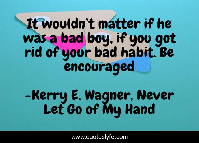 This page presents the quote "It wouldn’t matter if he was a bad boy, if you got rid of your bad habit. Be encouraged". Author of this quote is Kerry E. Wagner, Never Let Go of My Hand. This quote is about oprah-winfrey-favorite, best-ever, kerry-e-wagner, perspectives, tyler-perry, twitter, bookstores, encouragement, steve-harvey,.