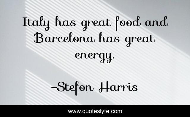 This page presents the quote "Italy has great food and Barcelona has great energy.". Author of this quote is Stefon Harris. This quote is about great, italy, energy,.
