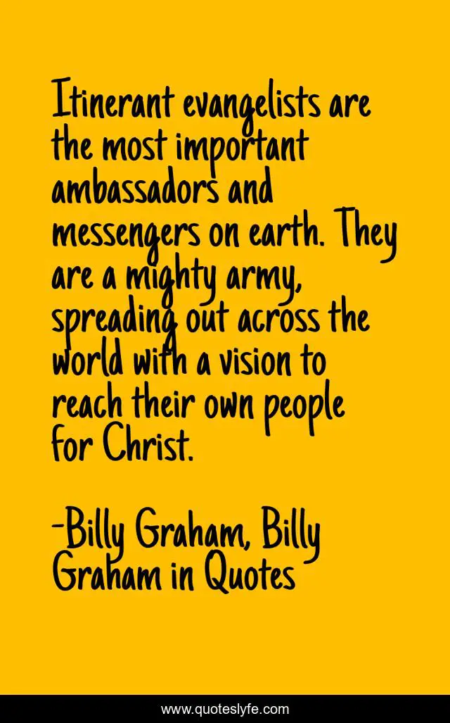 "Billy Graham, Billy Graham in Quotes Quotes." Quoteslyfe.com, 2025. Mon. 08 Dec. 2025. <https://www.quoteslyfe.com/quote/Itinerant-evangelists-are-the-most-important-ambassadors-152610>.