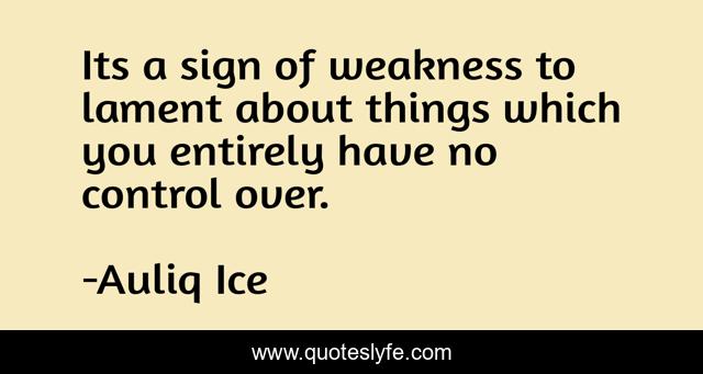This page presents the quote "Its a sign of weakness to lament about things which you entirely have no control over.". Author of this quote is Auliq Ice. This quote is about change, faith, trust, belief, philosophy,.