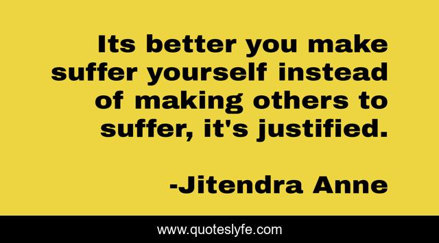 This page presents the quote "Its better you make suffer yourself instead of making others to suffer, it's justified.". Author of this quote is Jitendra Anne. .