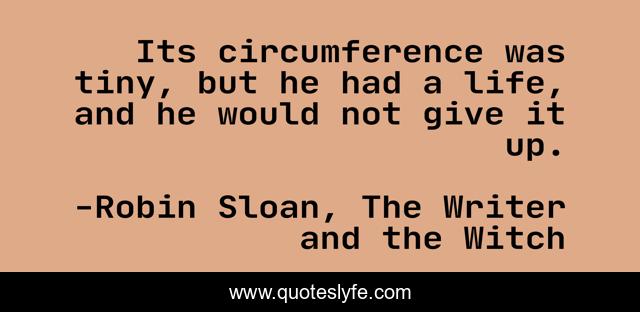 This page presents the quote "Its circumference was tiny, but he had a life, and he would not give it up.". Author of this quote is Robin Sloan, The Writer and the Witch. This quote is about life, value,.