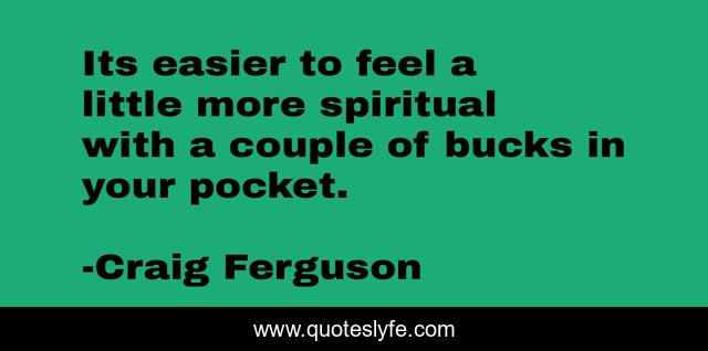 This page presents the quote "Its easier to feel a little more spiritual with a couple of bucks in your pocket.". Author of this quote is Craig Ferguson. This quote is about money, spiritual, christmas,.