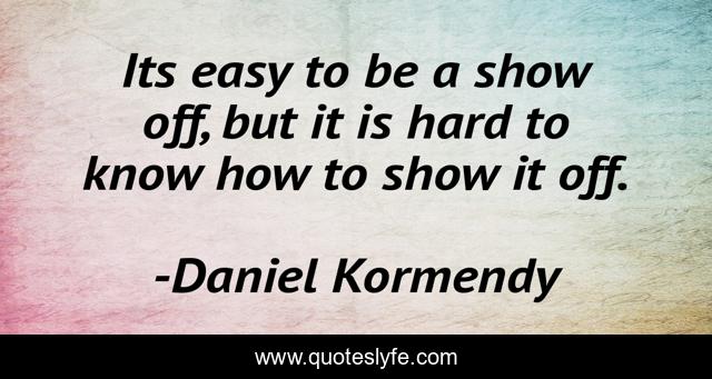 This page presents the quote "Its easy to be a show off, but it is hard to know how to show it off.". Author of this quote is Daniel Kormendy. This quote is about positive, confidence, motivational, optimistic,.