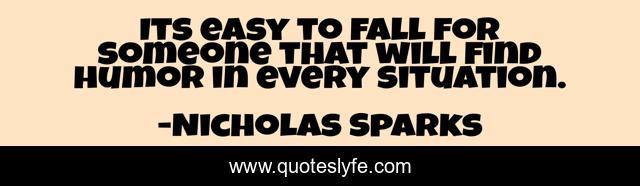 This page presents the quote "Its easy to fall for someone that will find humor in every situation.". Author of this quote is Nicholas Sparks. This quote is about humor, love, affection, fall,.