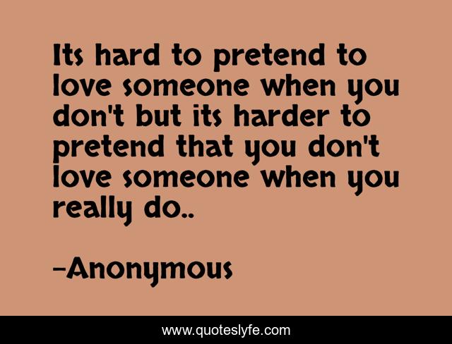 This page presents the quote "Its hard to pretend to love someone when you don't but its harder to pretend that you don't love someone when you really do..". Author of this quote is Anonymous. This quote is about love, affection, love-hurts,.