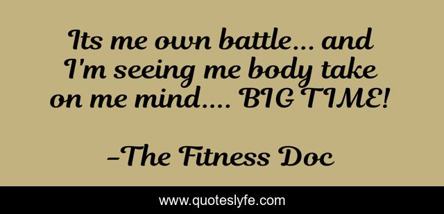 This page presents the quote "Its me own battle... and I'm seeing me body take on me mind.... BIG TIME!". Author of this quote is The Fitness Doc. This quote is about fitness, fat-loss, conditioning, sports,.