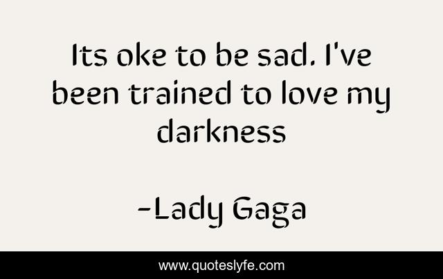 This page presents the quote "Its oke to be sad. I've been trained to love my darkness". Author of this quote is Lady Gaga. This quote is about life, heartbreak, love, affection, reality,.