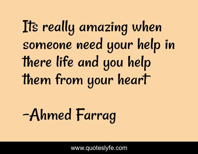 This page presents the quote "Its really amazing when someone need your help in there life and you help them from your heart". Author of this quote is Ahmed Farrag. This quote is about heart, help,.