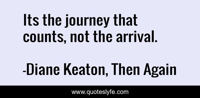 This page presents the quote "Its the journey that counts, not the arrival.". Author of this quote is Diane Keaton, Then Again. This quote is about life, journey,.