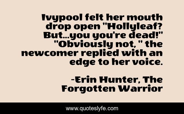 "Erin Hunter, The Forgotten Warrior Quotes." Quoteslyfe.com, 2025. Mon. 08 Dec. 2025. <https://www.quoteslyfe.com/quote/Ivypool-felt-her-mouth-drop-open-Hollyleaf-210778>.