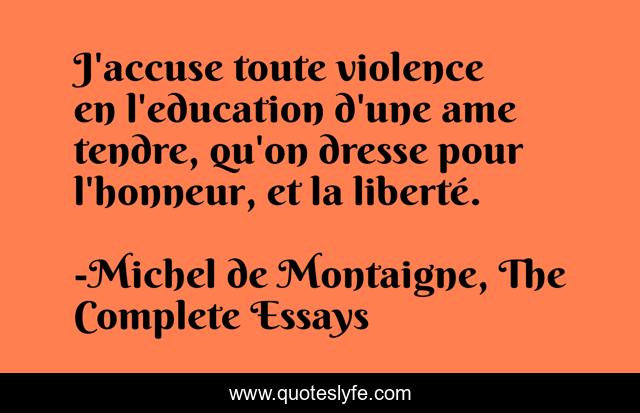 "Michel de Montaigne, The Complete Essays Quotes." Quoteslyfe.com, 2025. Mon. 08 Dec. 2025. <https://www.quoteslyfe.com/quote/J-accuse-toute-violence-en-l-education-8713>.