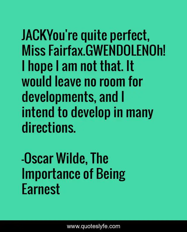 "Oscar Wilde, The Importance of Being Earnest Quotes." Quoteslyfe.com, 2025. Mon. 08 Dec. 2025. <https://www.quoteslyfe.com/quote/JACKYou-re-quite-perfect-Miss-Fairfax-GWENDOLENOh-205741>.