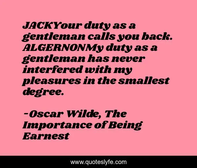 "Oscar Wilde, The Importance of Being Earnest Quotes." Quoteslyfe.com, 2025. Fri. 05 Dec. 2025. <https://www.quoteslyfe.com/quote/JACKYour-duty-as-a-gentleman-calls-you-227138>.