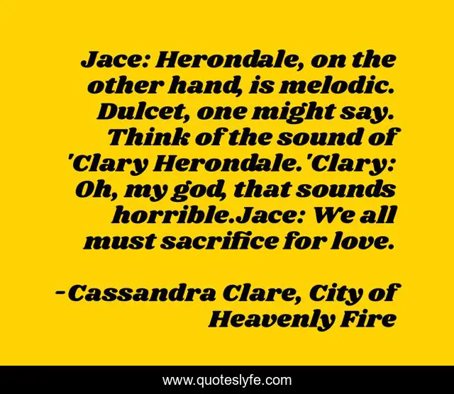 Jace: Herondale, on the other hand, is melodic. Dulcet, one might say. Think of the sound of 'Clary Herondale.'Clary: Oh, my god, that sounds horrible.Jace: We all must sacrifice for love.