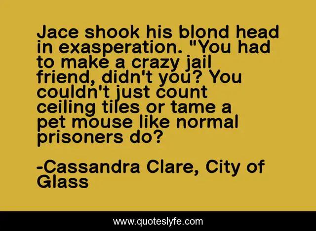 "Cassandra Clare, City of Glass Quotes." Quoteslyfe.com, 2025. Tue. 09 Dec. 2025. <https://www.quoteslyfe.com/quote/Jace-shook-his-blond-head-in-exasperation-5444>.