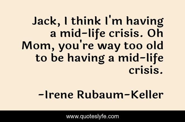 Jack, I think I'm having a mid-life crisis. Oh Mom, you're way too old to be having a mid-life crisis.