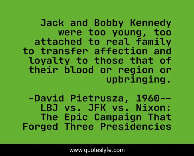 "David Pietrusza, 1960--LBJ vs. JFK vs. Nixon: The Epic Campaign That Forged Three Presidencies Quotes." Quoteslyfe.com, 2025. Sat. 06 Dec. 2025. <https://www.quoteslyfe.com/quote/Jack-and-Bobby-Kennedy-were-too-young-160903>.