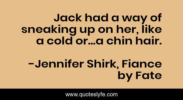 This page presents the quote "Jack had a way of sneaking up on her, like a cold or...a chin hair.". Author of this quote is Jennifer Shirk, Fiance by Fate. This quote is about romance, bliss, contemporary-romance, entangled-imprint,.