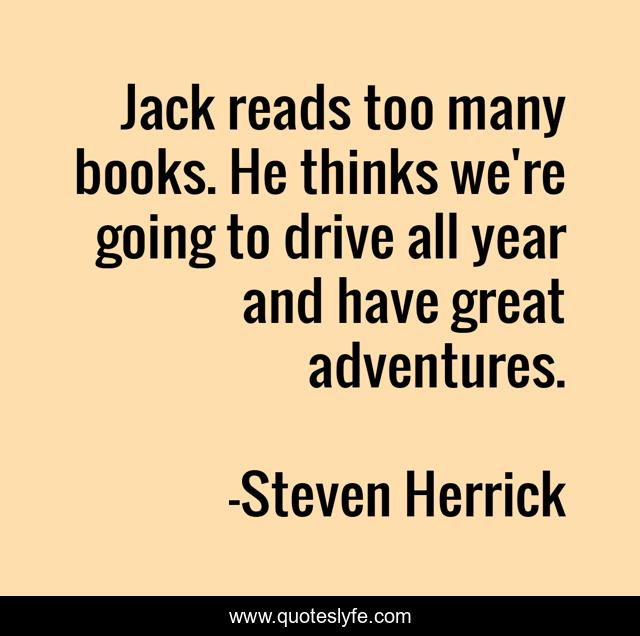 This page presents the quote "Jack reads too many books. He thinks we're going to drive all year and have great adventures.". Author of this quote is Steven Herrick. This quote is about read, books, adventures, drive,.